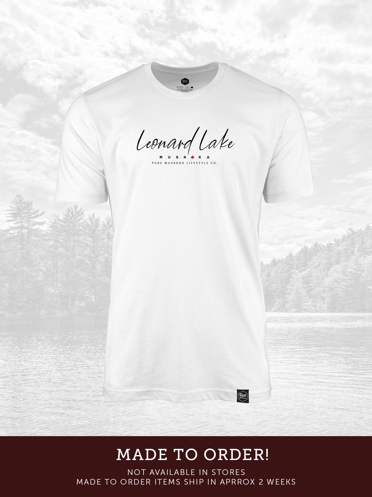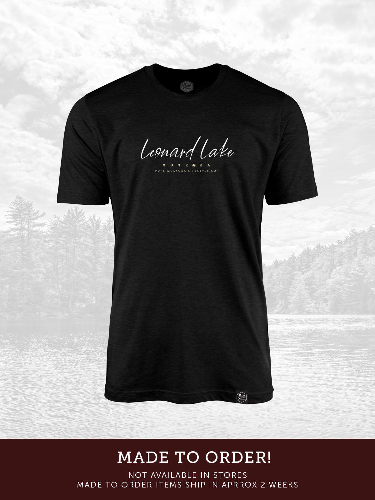 Embrace the spirit of Leonard Lake. This soft, comfortable tee is designed to capture the feeling of Muskoka and your community pride. Made to order with our signature design, it’s available in five colour options, each inspired by the natural beauty of Leonard Lake.