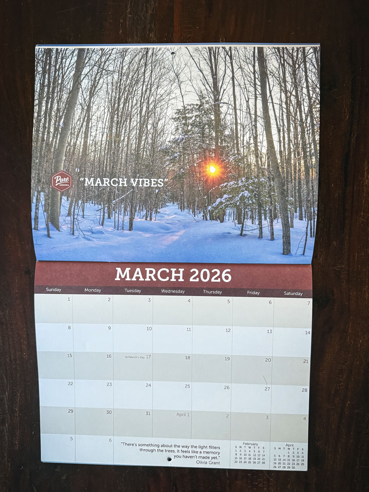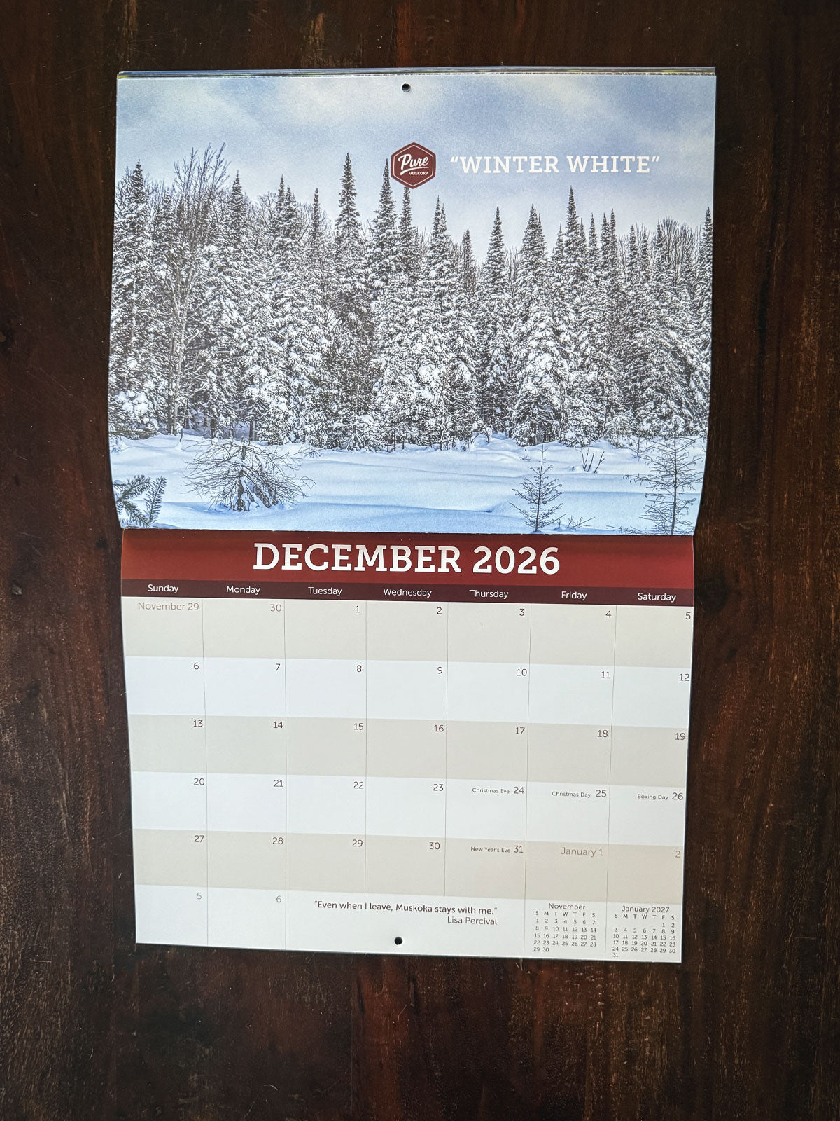 Our 2026 Pure Muskoka Moments calendar is based on our popular daily photos. This is a collection of some of our favourite photos that will allow you to experience a whole year of Muskoka. This calendar will definitely give you that “Muskoka Feeling” that is so hard to put into words.
