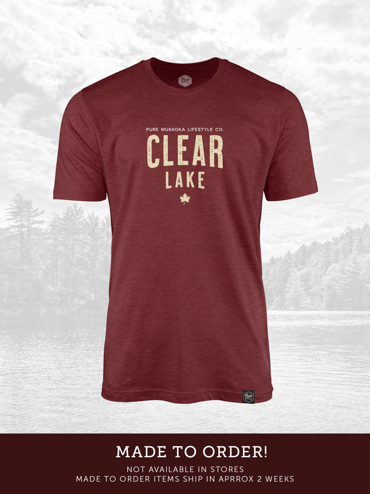Embrace the spirit of Clear Lake. This soft, comfortable tee is designed to capture the feeling of Muskoka and your community pride. Made to order with our signature design, it’s available in five colour options, each inspired by the natural beauty of Clear Lake.