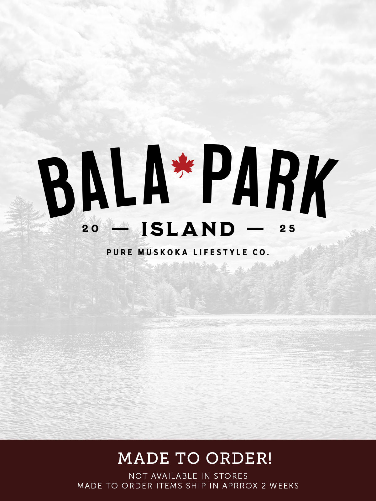Celebrate the essence of Bala Park Island. A piece of Muskoka pride, this hoodie is made to order, designed with our signature style, and available in six stunning colours that reflect the beauty and spirit of this special place.