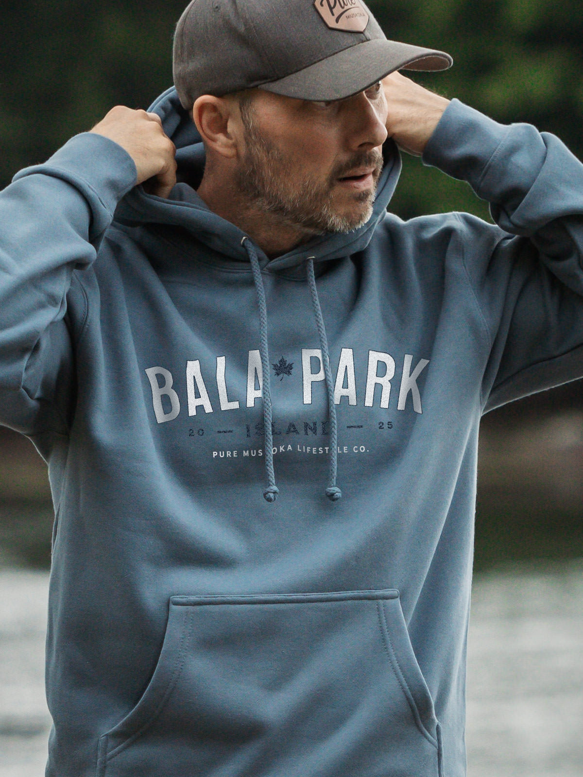 Celebrate the essence of Bala Park Island. A piece of Muskoka pride, this hoodie is made to order, designed with our signature style, and available in six stunning colours that reflect the beauty and spirit of this special place.