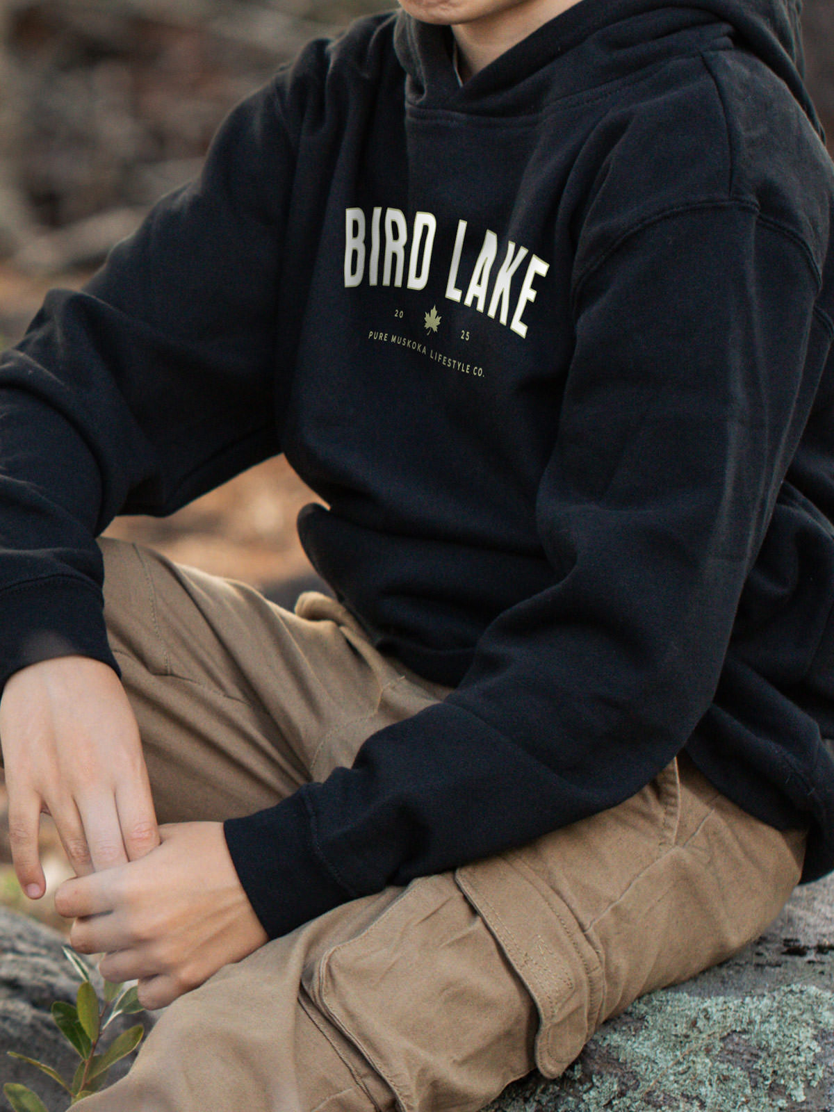 Whether they’re boating on the lake, playing by the shore, or simply enjoying the beauty of Muskoka, the Bird Lake Kids Community Hoodie is a perfect way to help them carry that Muskoka pride wherever they go.