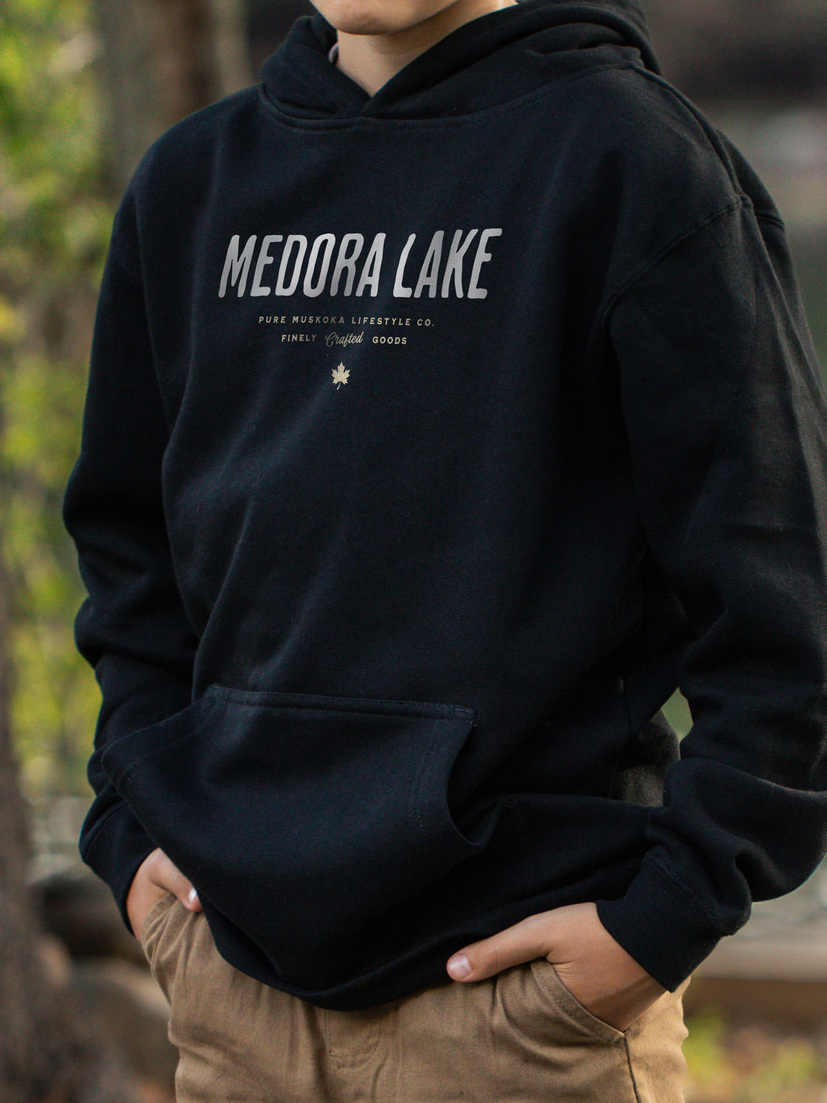 Whether they’re boating on the lake, playing by the shore, or simply enjoying the beauty of Muskoka, the Medora Lake Kids Community Hoodie is a perfect way to help them carry that Muskoka pride wherever they go.