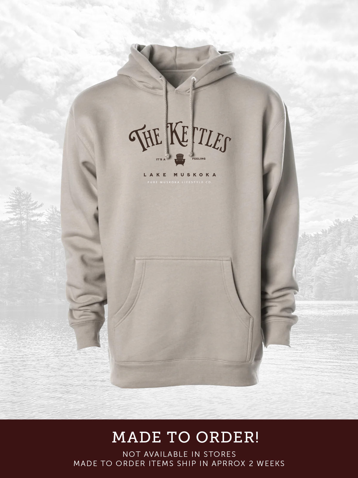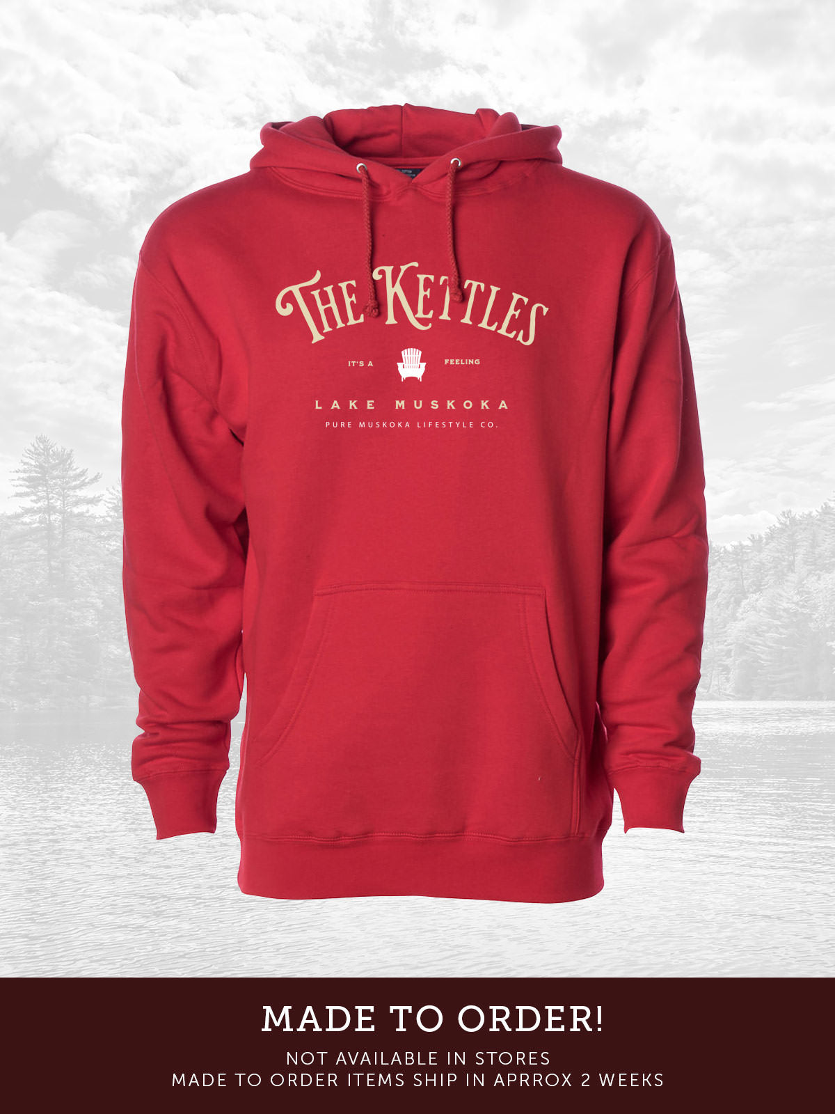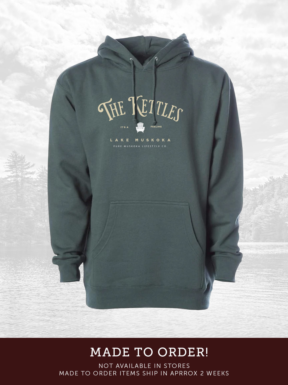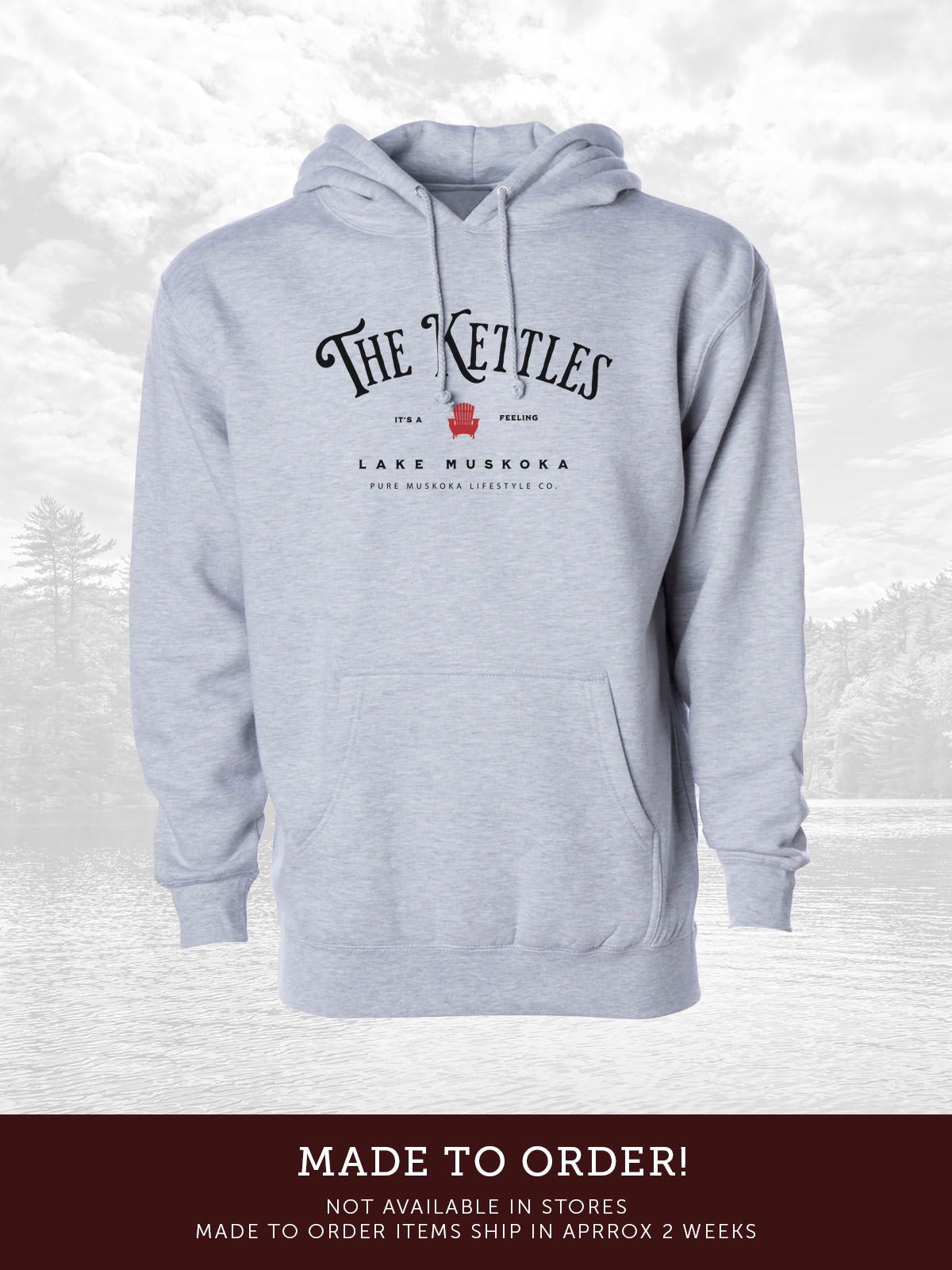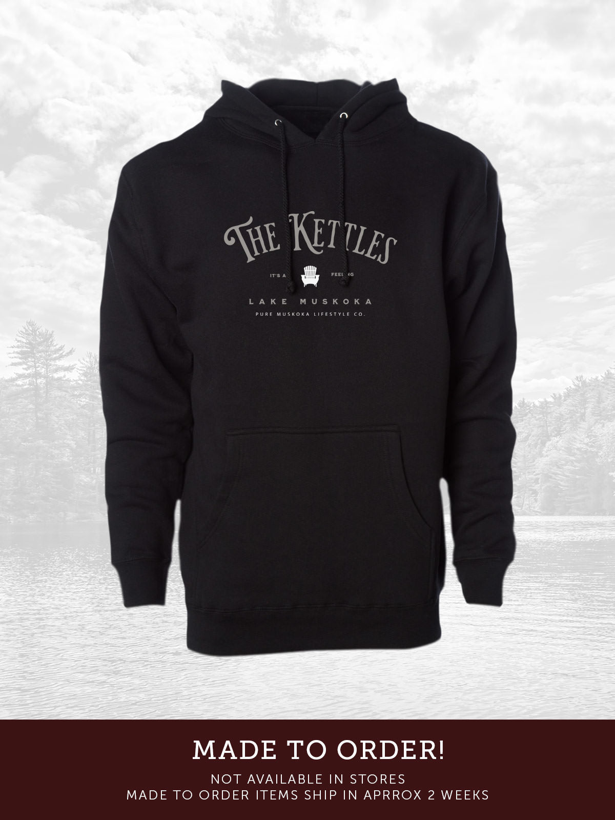 Celebrate the essence of The Kettles. A piece of Lake Muskoka pride, this hoodie is made to order, designed with our signature style, and available in six stunning colours that reflect the beauty and spirit of this special place.