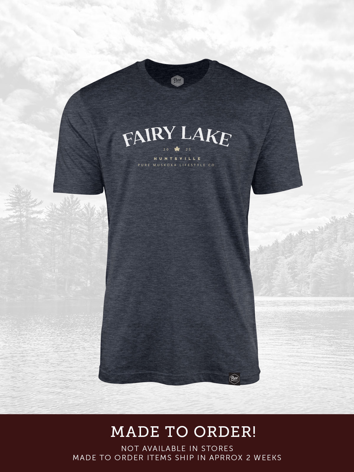 Embrace the spirit of Fairy Lake. This soft, comfortable tee is designed to capture the feeling of Muskoka and your community pride. Made to order with our signature design, it’s available in five colour options, each inspired by the natural beauty of Fairy Lake.