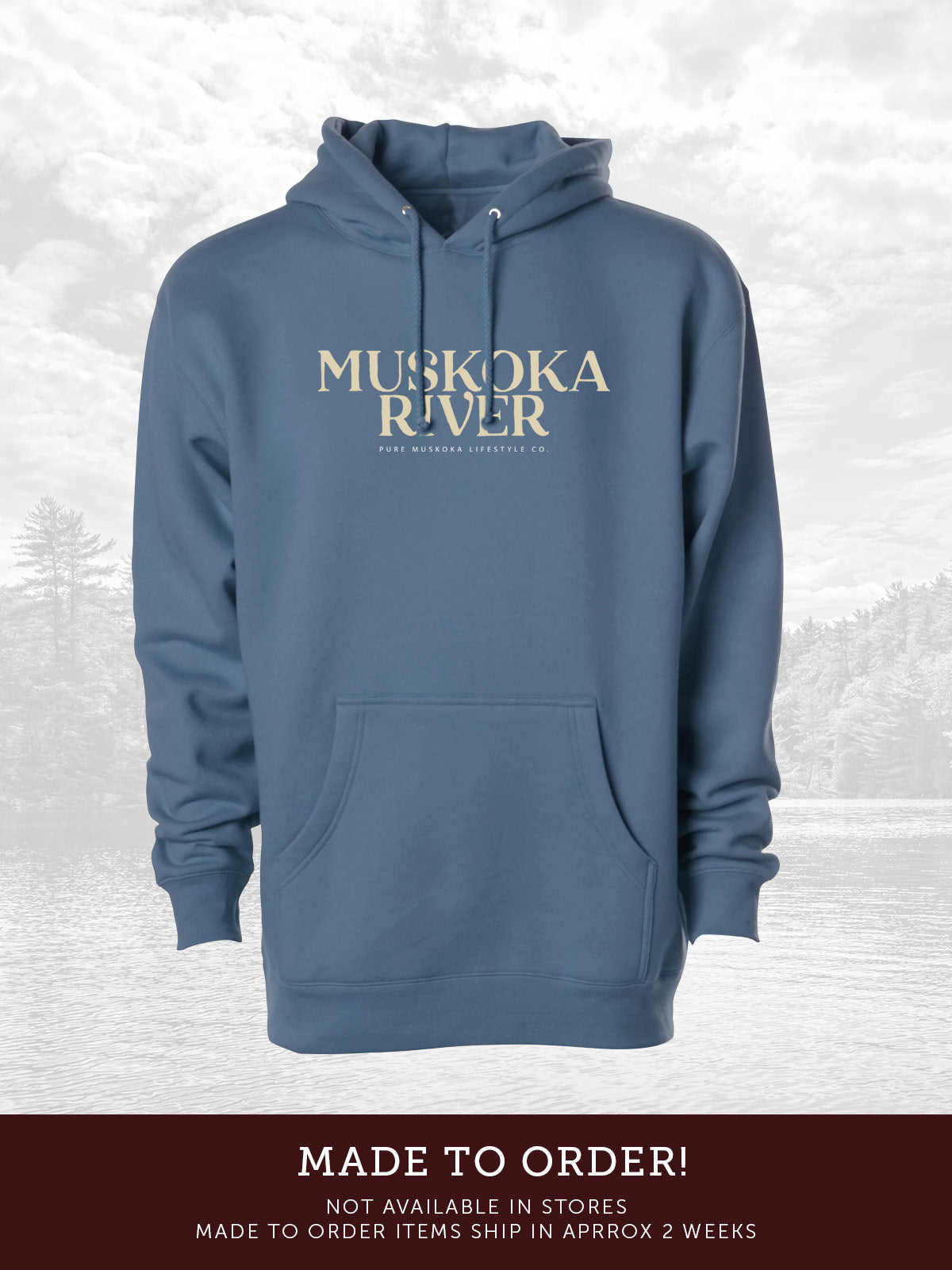 Celebrate the essence of the Muskoka River. A piece of Muskoka pride, this hoodie is made to order, designed with our signature style, and available in six stunning colours that reflect the beauty and spirit of this special place.