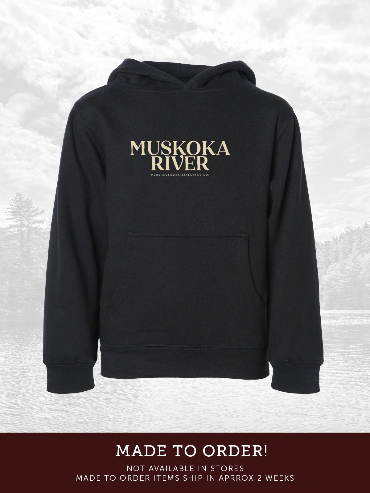 Let your little ones show their love for the Muskoka River with our Kids Community Hoodie. Designed to capture the spirit of Muskoka and the community pride that comes with it, this hoodie is made to order with our signature style and quality.