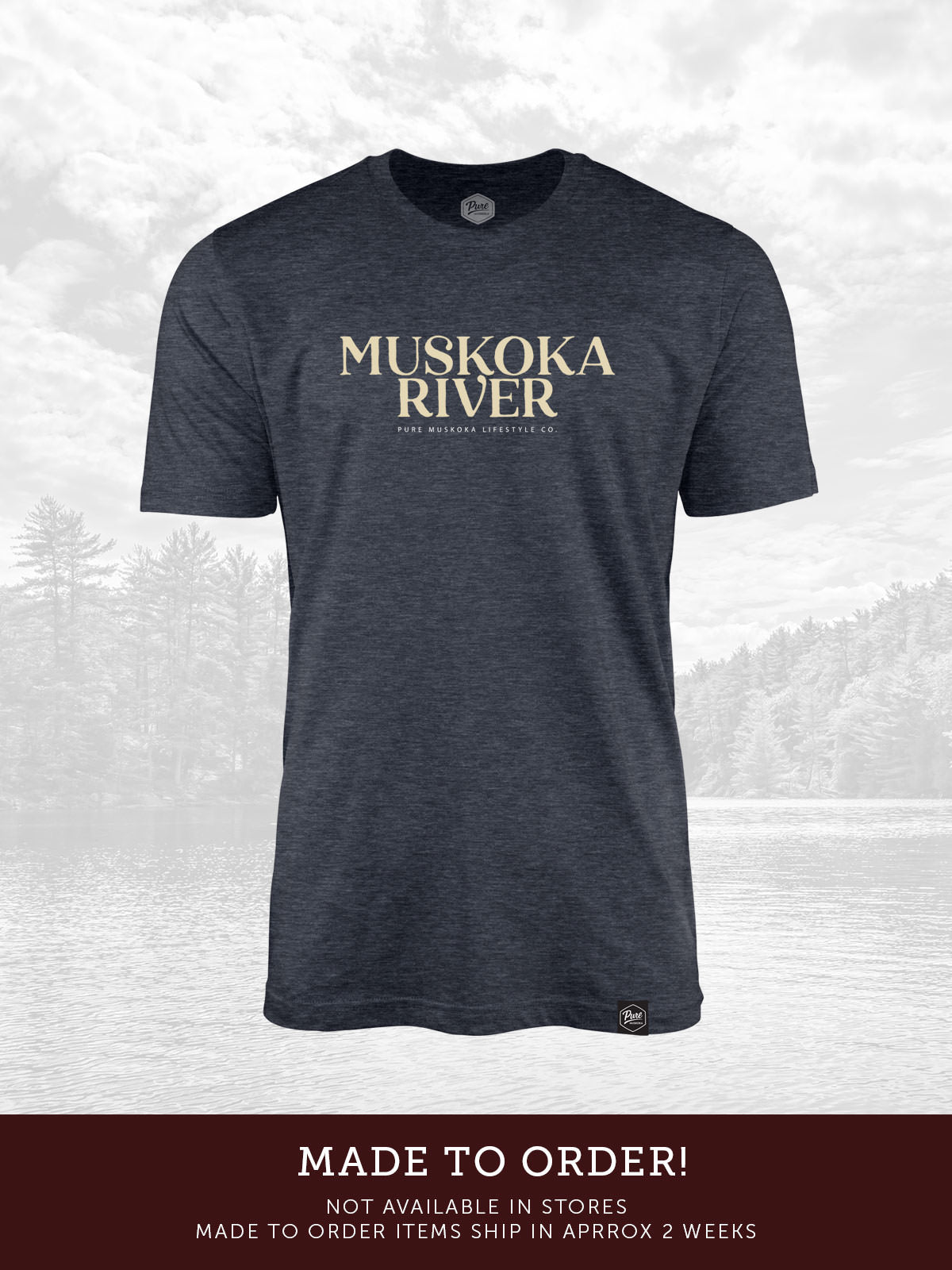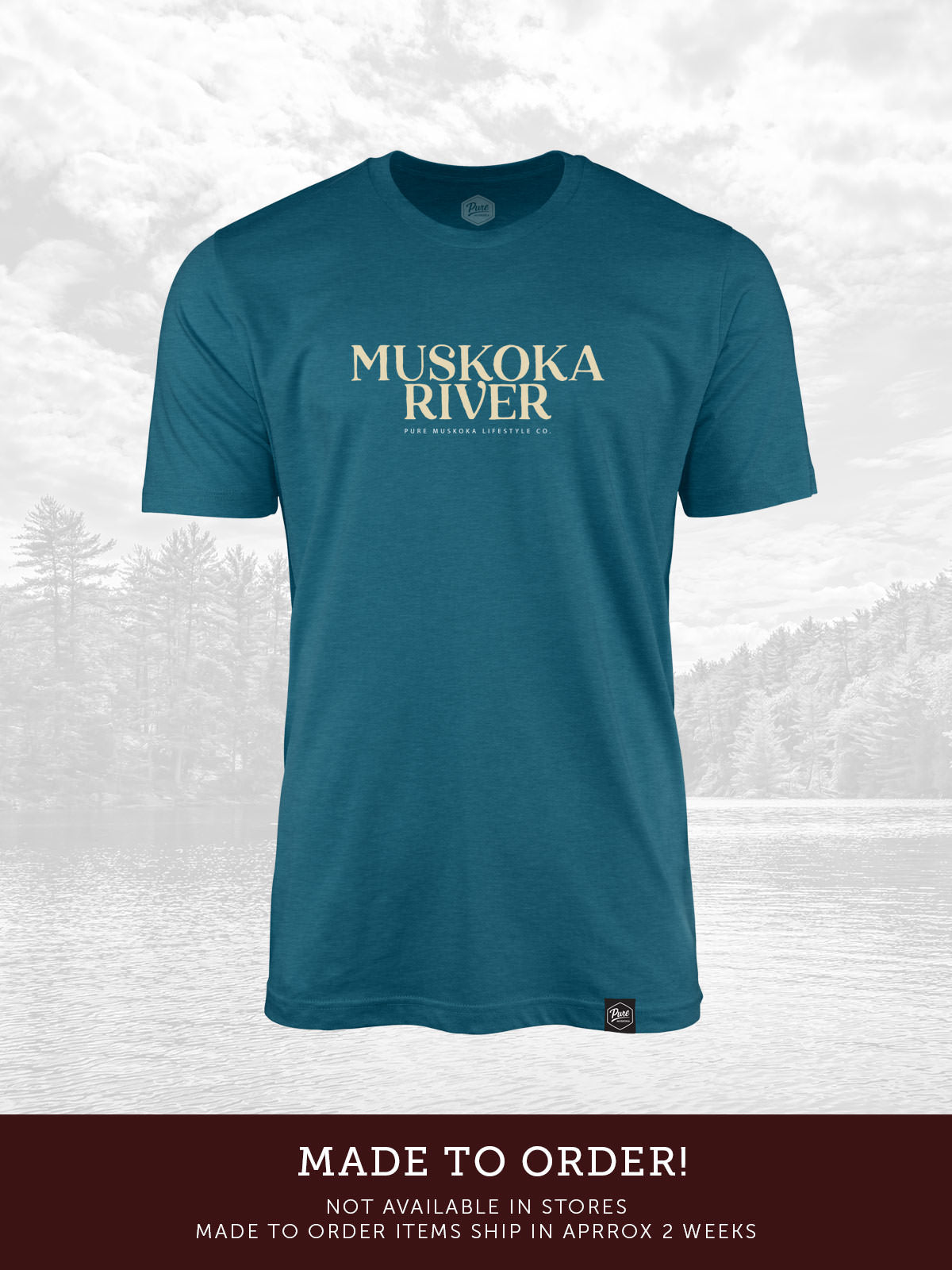 Embrace the spirit of the Muskoka River. This soft, comfortable tee is designed to capture the feeling of Muskoka and your community pride. Made to order with our signature design, it’s available in five colour options, each inspired by the natural beauty of the Muskoka River.