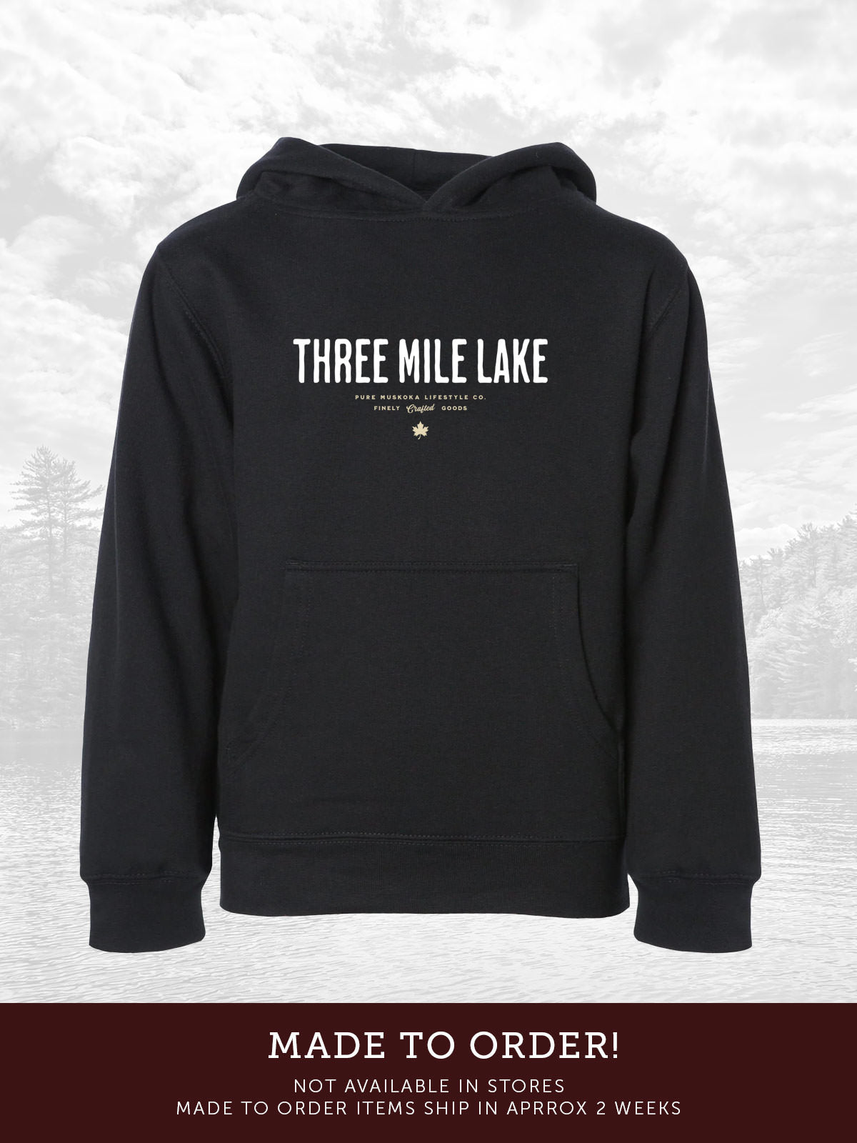 Let your little ones show their love for Three Mile Lake with our Kids Community Hoodie. Designed to capture the spirit of Muskoka and the community pride that comes with it, this hoodie is made to order with our signature style and quality.