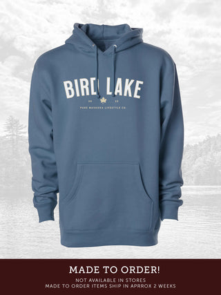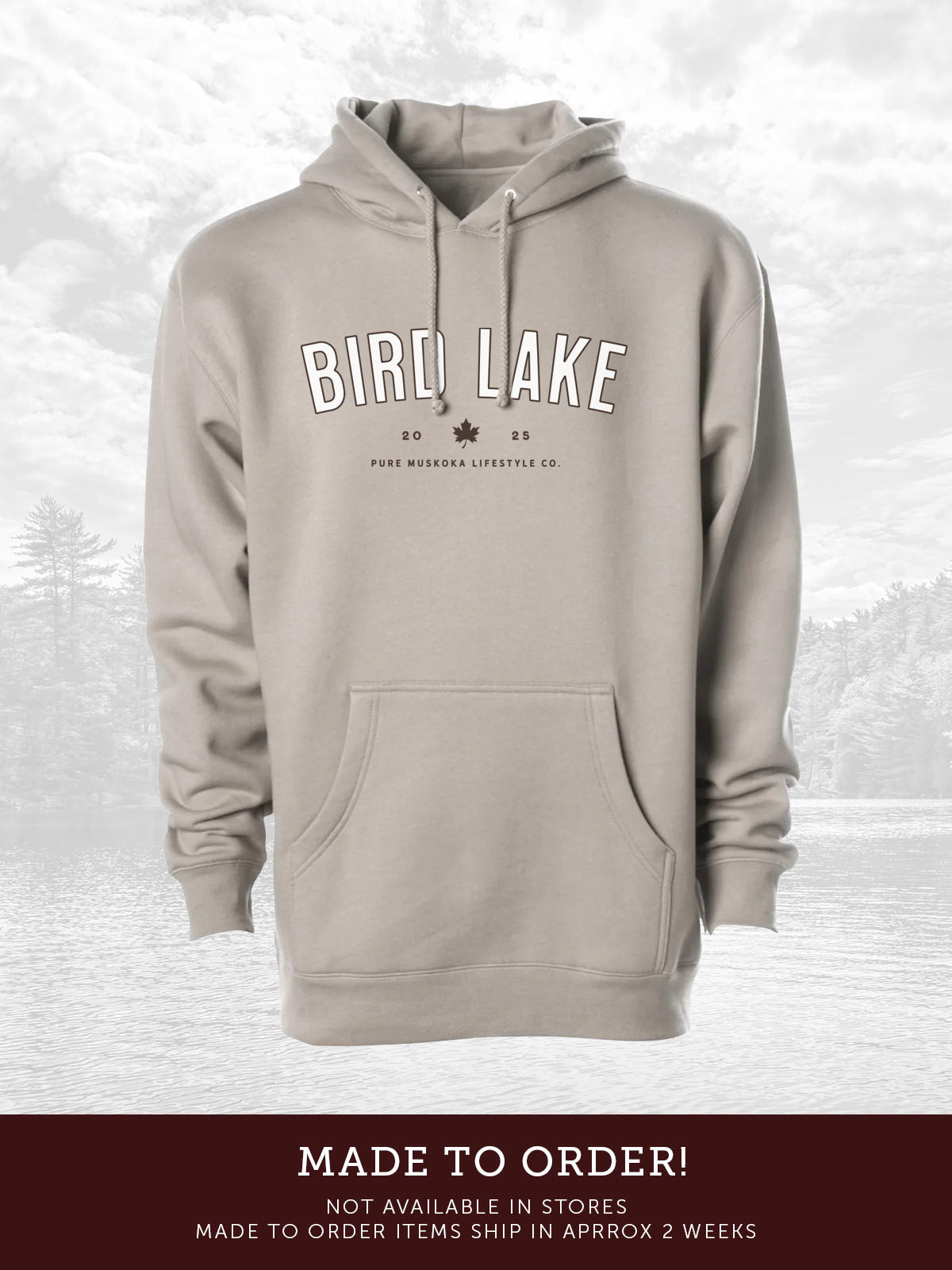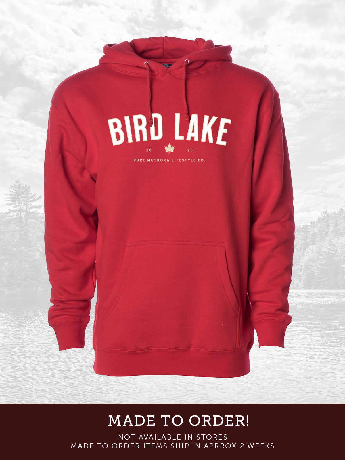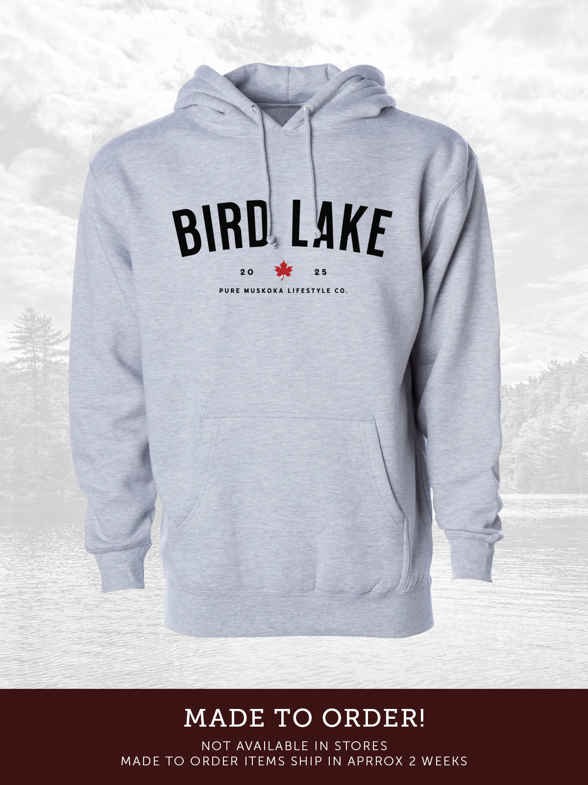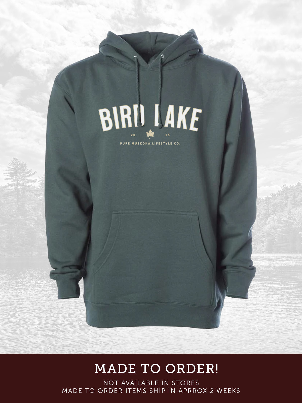 Celebrate the essence of Bird Lake. A piece of Muskoka pride, this hoodie is made to order, designed with our signature style, and available in six stunning colours that reflect the beauty and spirit of this special place.