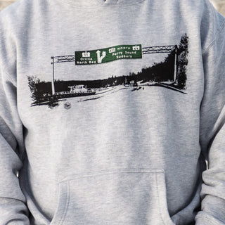 Introducing the 400/11 Highway Split Hoodie - a comfortable and stylish way to pay homage to the iconic and nostalgic northern journey. This hoodie is perfect for those who have memories of driving north from the city and feeling the stress fall away as they approach the north. The design features the famous 400/11 highway split sign, a symbol of the road trips we've all taken and the memories we've made. Made with soft and durable materials, this hoodie is perfect for those chilly morning drives or a casual day out. Whether you're a frequent traveler or just love the nostalgia of the north, this hoodie is a must-have for any wardrobe.