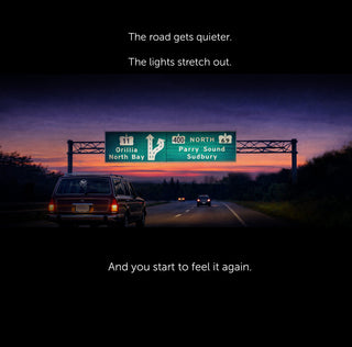 Built as the nightfall companion to our best-selling Decisions, Decisions shirt, this design captures the same stretch of road, just a few hours later. Darker. Quieter. More yours.