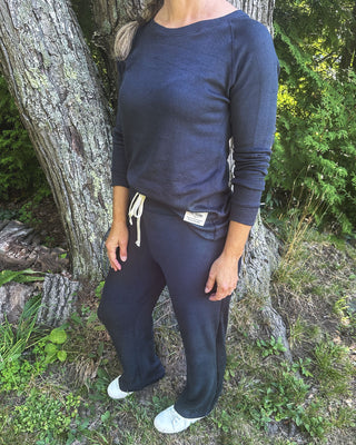 Whether you're unwinding at the cottage, lounging on the dock with a good book, or curling up by the fire, these gorgeous, lightweight lounge pants are your ultimate comfy companion. But don't let their comfort fool you - they are also stylish, making them suitable for those impromptu trips to the store or a casual dinner in town. These pants are the perfect blend of comfort and versatility - your new go-to choice for cozy moments and everyday adventures.