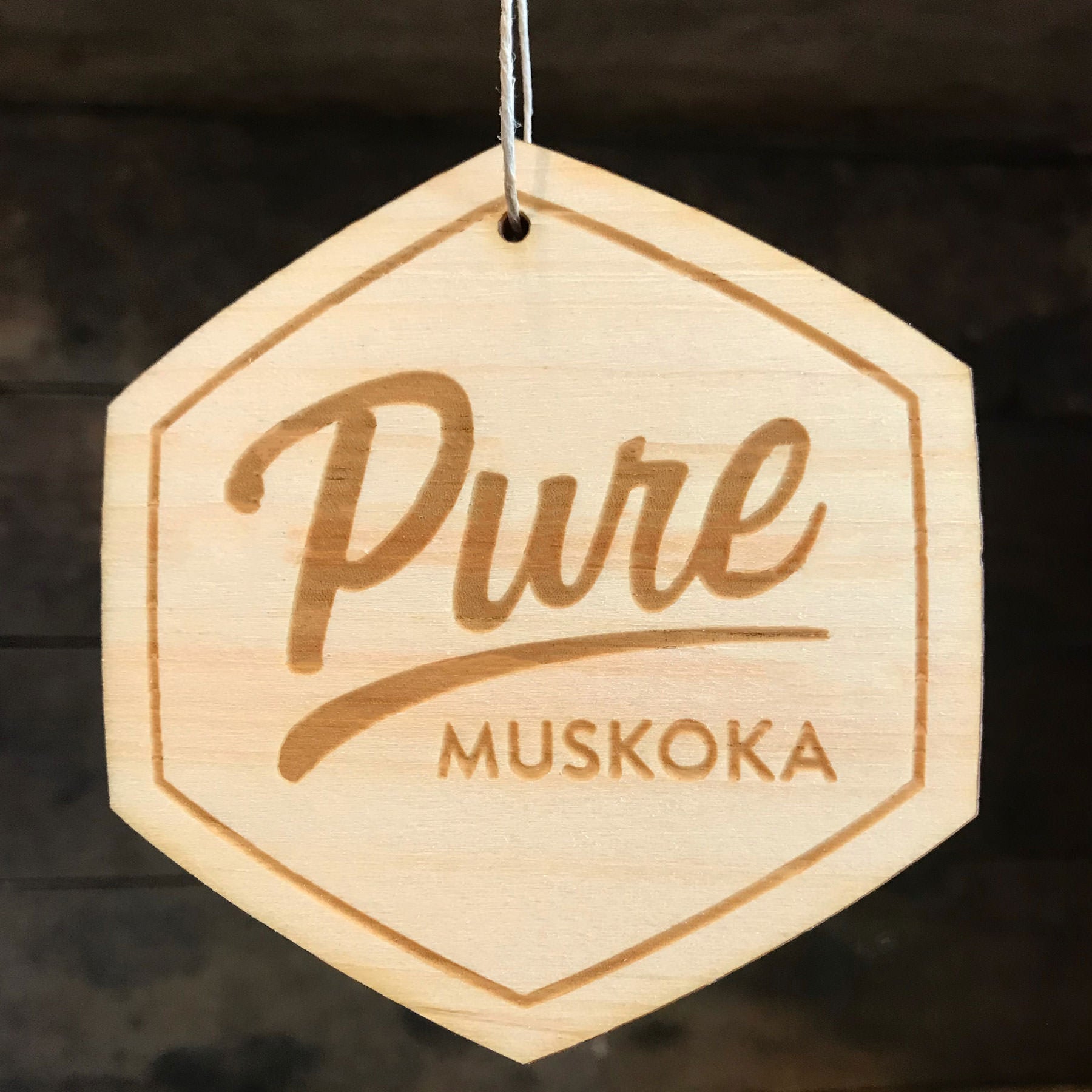 These (handmade in Muskoka) wooden ornaments are perfect for any lover of the Pure Muskoka brand and what it represents. A nice addition to your home or the Christmas tree, reminiscent of days on the lake or outdoors in beautiful Muskoka!